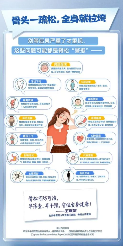 骨质疏松症不仅导致骨痛和活动受限,还可能发生骨折