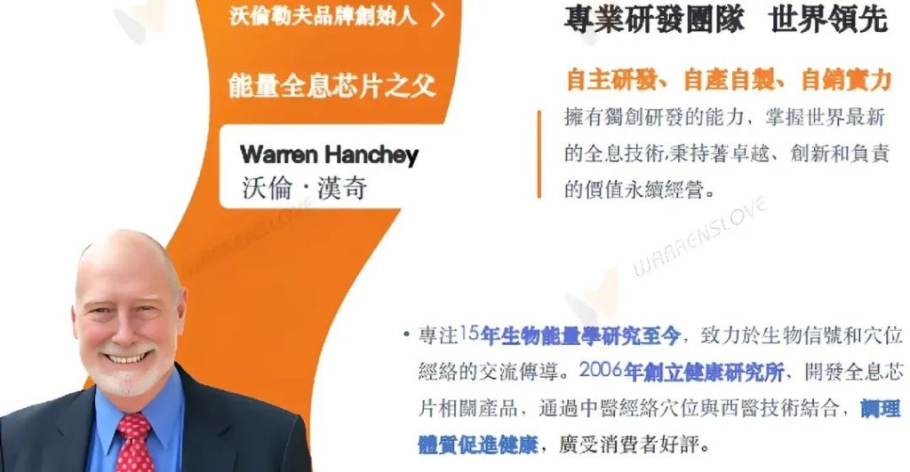 沃伦于2006年创立了健康研究所,将中医的经络智慧与西方尖端的医疗技术结合,开发出了量子环系列产品。