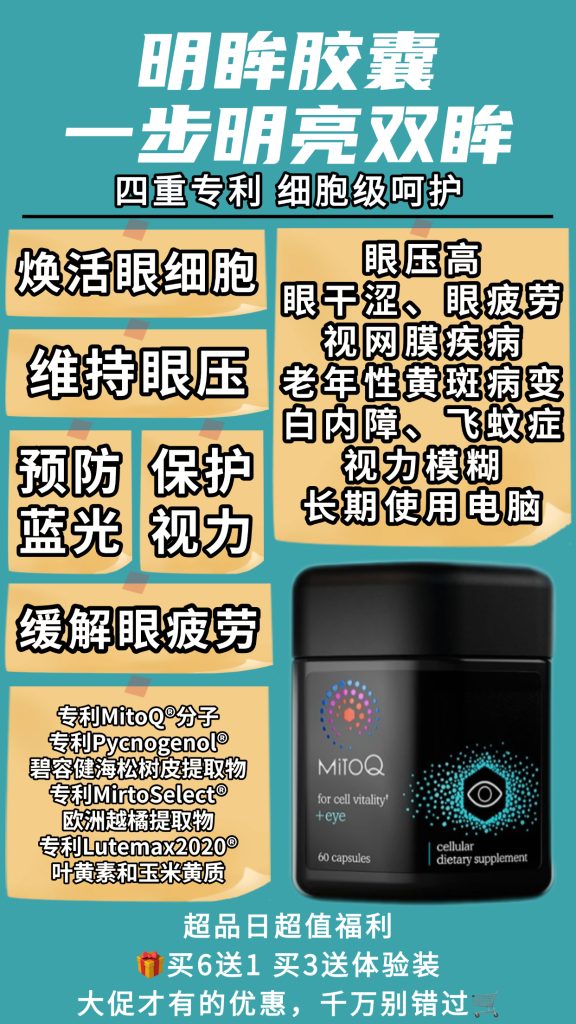 MitoQ这款明眸胶囊,是市面上护眼产品的佼佼者,领先很多个段位!