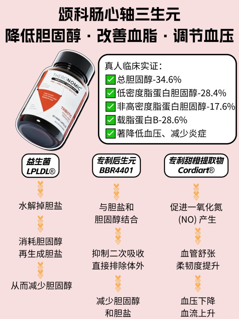 推荐颂科肠心轴三生元来改善 里面的这3种明星成分,有效降低胆固醇、改善血脂、调节血压!
